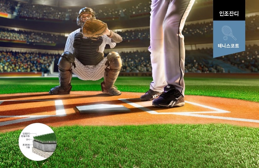 - 천연잔디와 유사한 기능의 제품으로 슬라이딩시 부상의 우려가 거의 없고, 잔디엉김이 없으며 무충진 타입으로 고무칩이나 규사로 인한 분진발생이 없어 안전합니다.